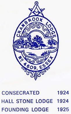 Cranbrook Lodge no. 4609 was consecrated in the Grand Temple at Freemasons Hall on Tuesday 19th March 1924. (see below for a list of consecrating officers). The majority of original members lived in the vacinity and a lot of them were connected with St. Andrews Church and the Cranbrook Castle Lawn Tennis Club. A picture on the Lodge jewel and badge depicts a cottage behind a gravel drive with some water alongside. This shows the entrance lodge of the historic Cranbrook House and the Cran-brook which flowed nearby. This lodge house stood at the start of "The Drive" where it diverges from Cranbrook Road. The old Cranbrook House was pulled down in 1900 but the entrance lodge remained until about 1930, when it was demolished to make way for the Valentine Telephone Exchange. On 30th June 1925 Cranbrook Lodge became a Founding Lodge to the Royal Masonic Hospital and in the same year, became a Hall Stone Lodge.